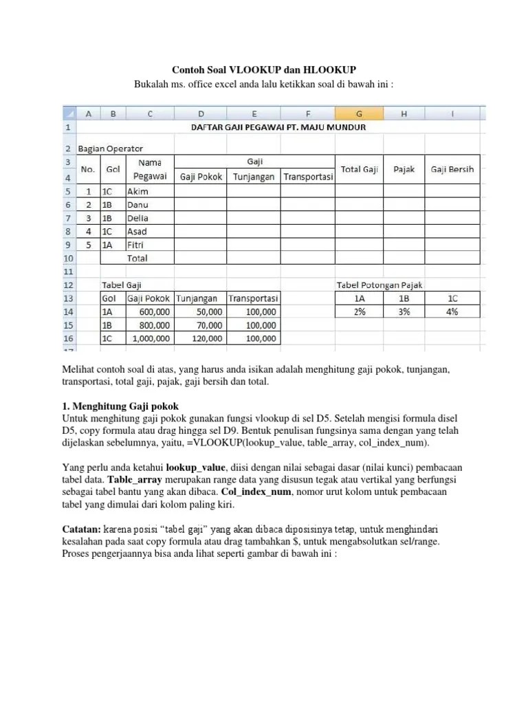 Contoh soal excel vlookup dan hlookup.